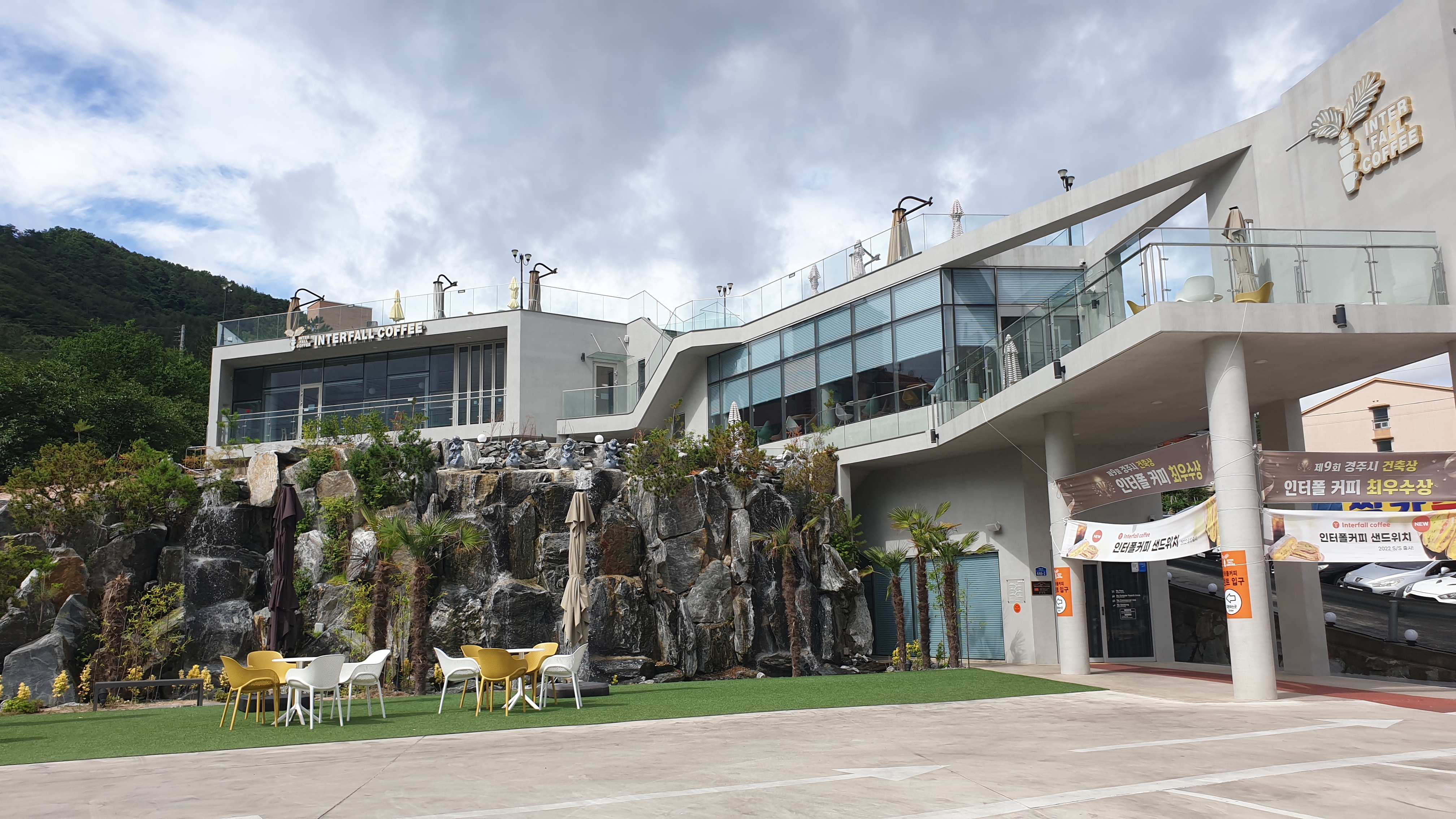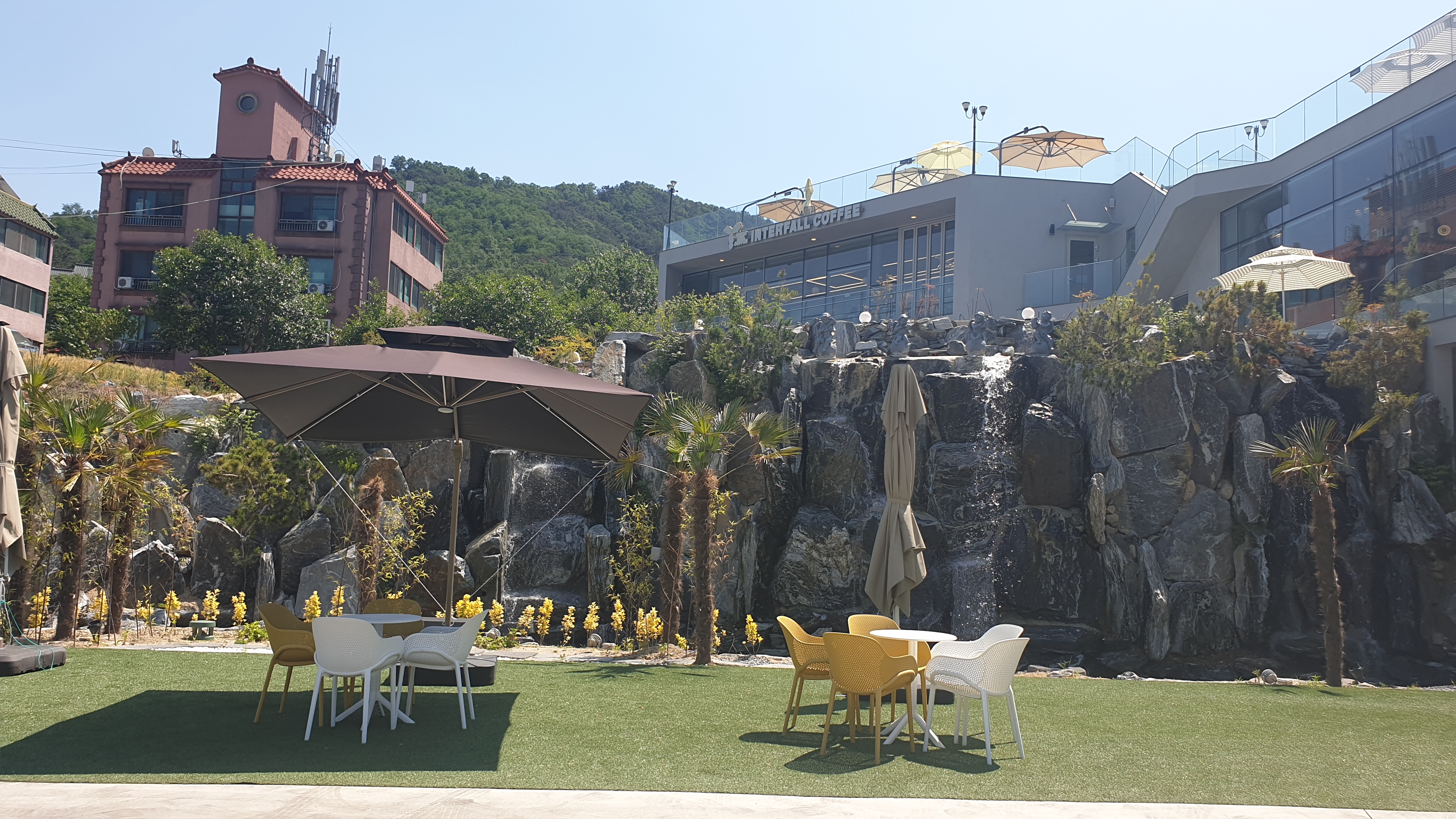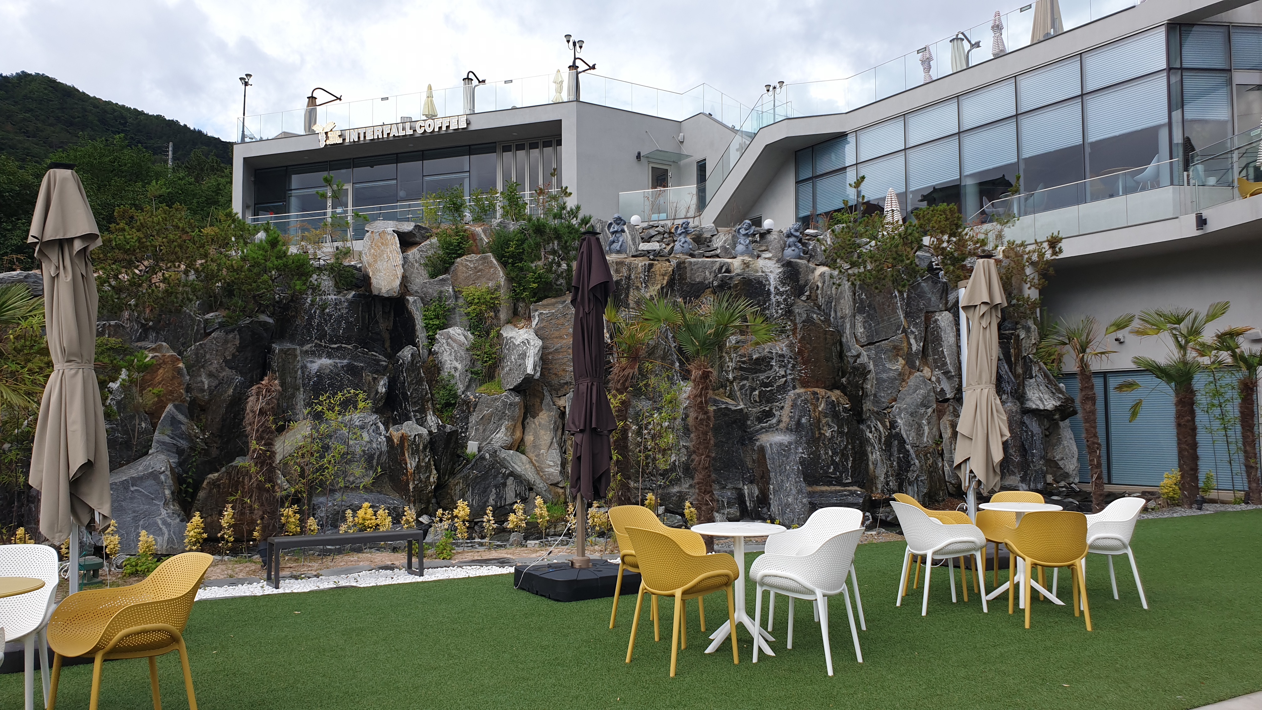주차장 앞에 폭포가 있고 위로 올라가면 커피숍이 있답니다
