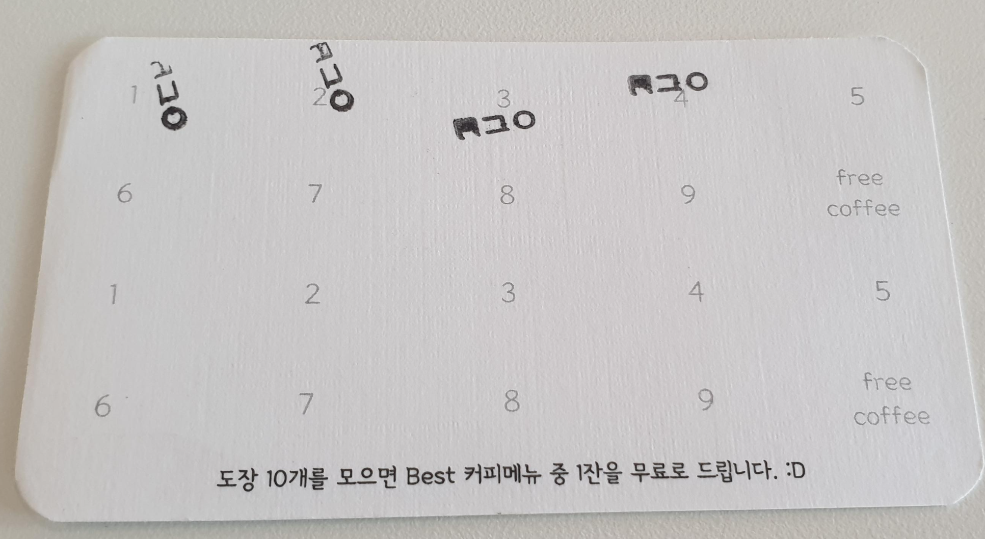 도장 10개를 모으시면 베스트 메뉴 중 1잔을 무료로 주신답니다