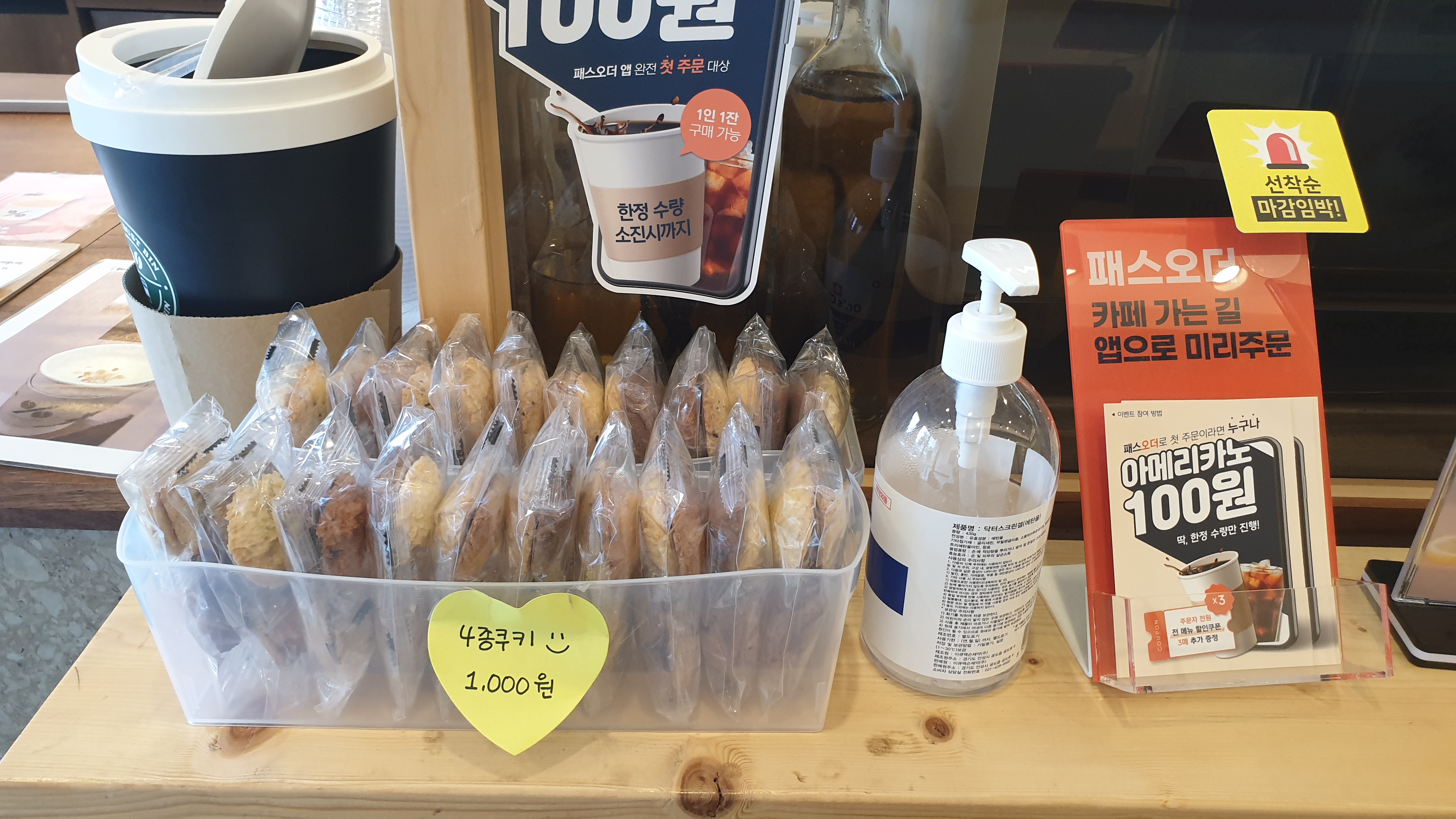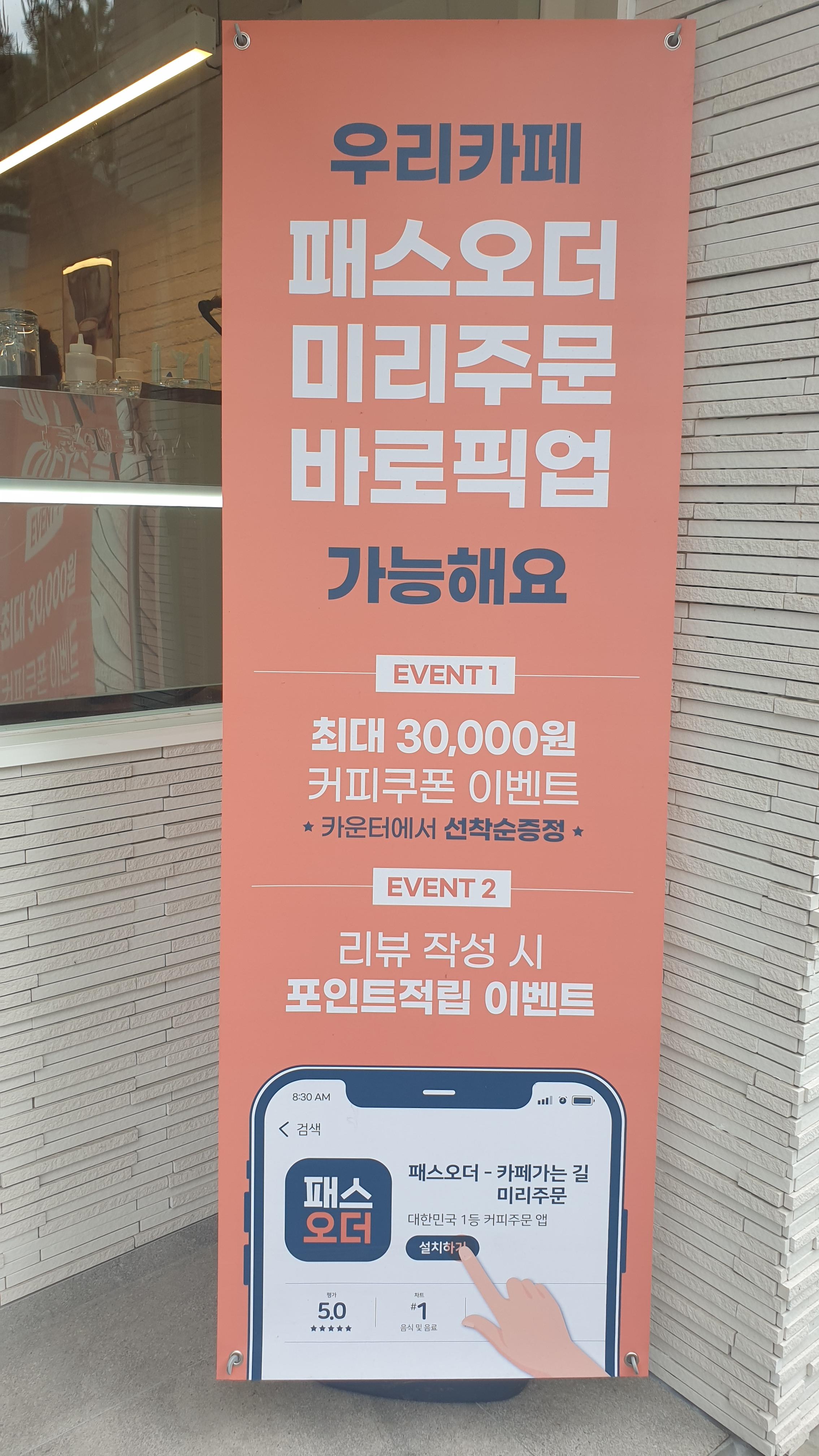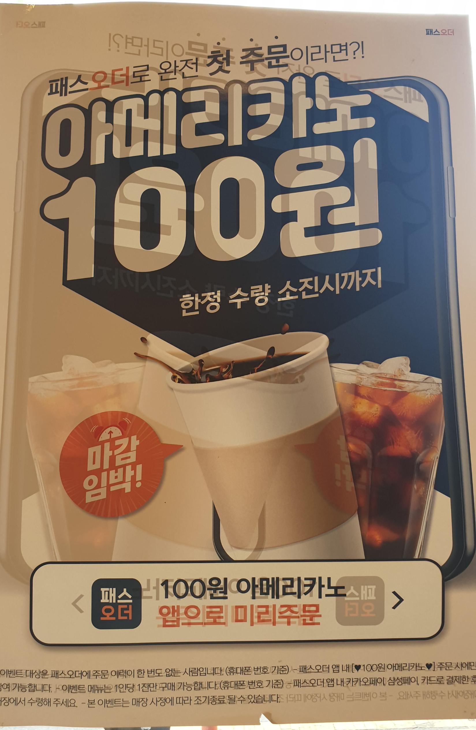 패스 오더로 첫 주문 시 아메리카노 100원 행사도 하고 있어요