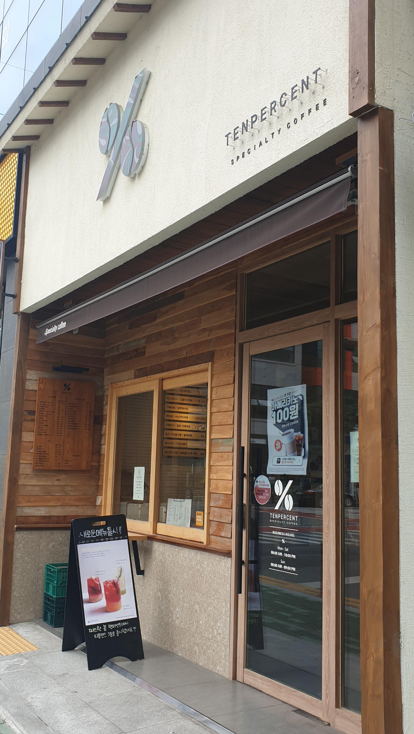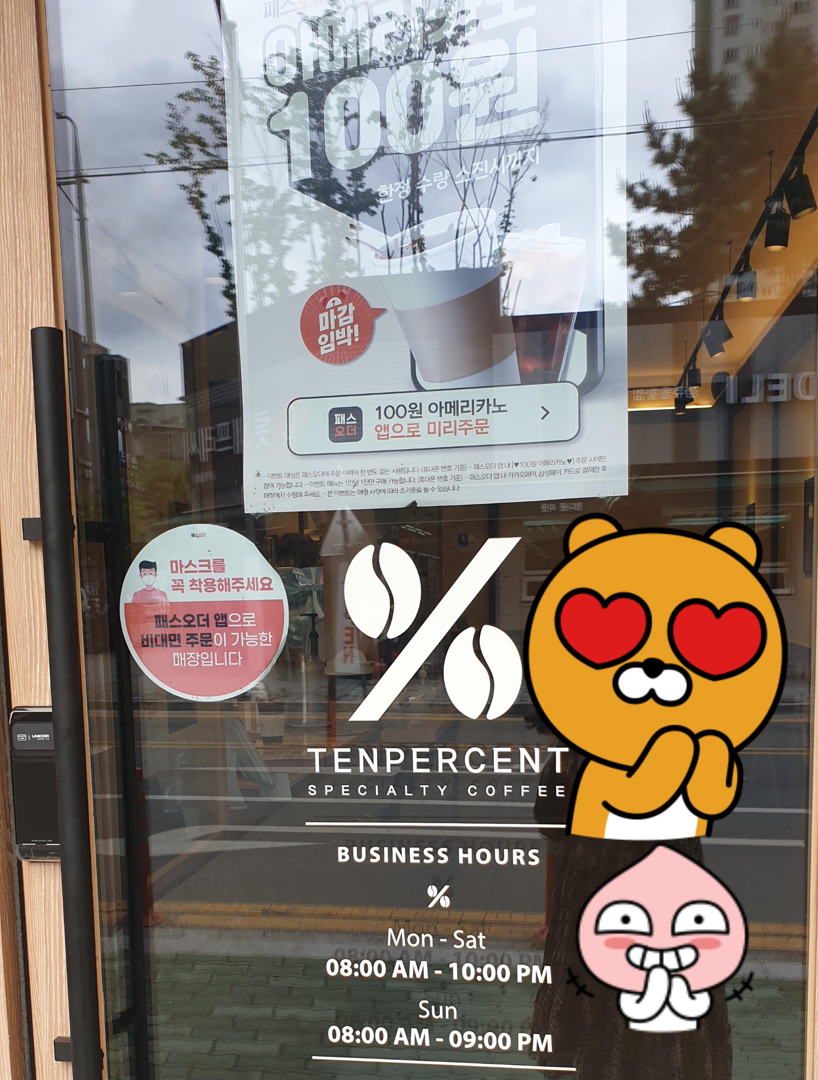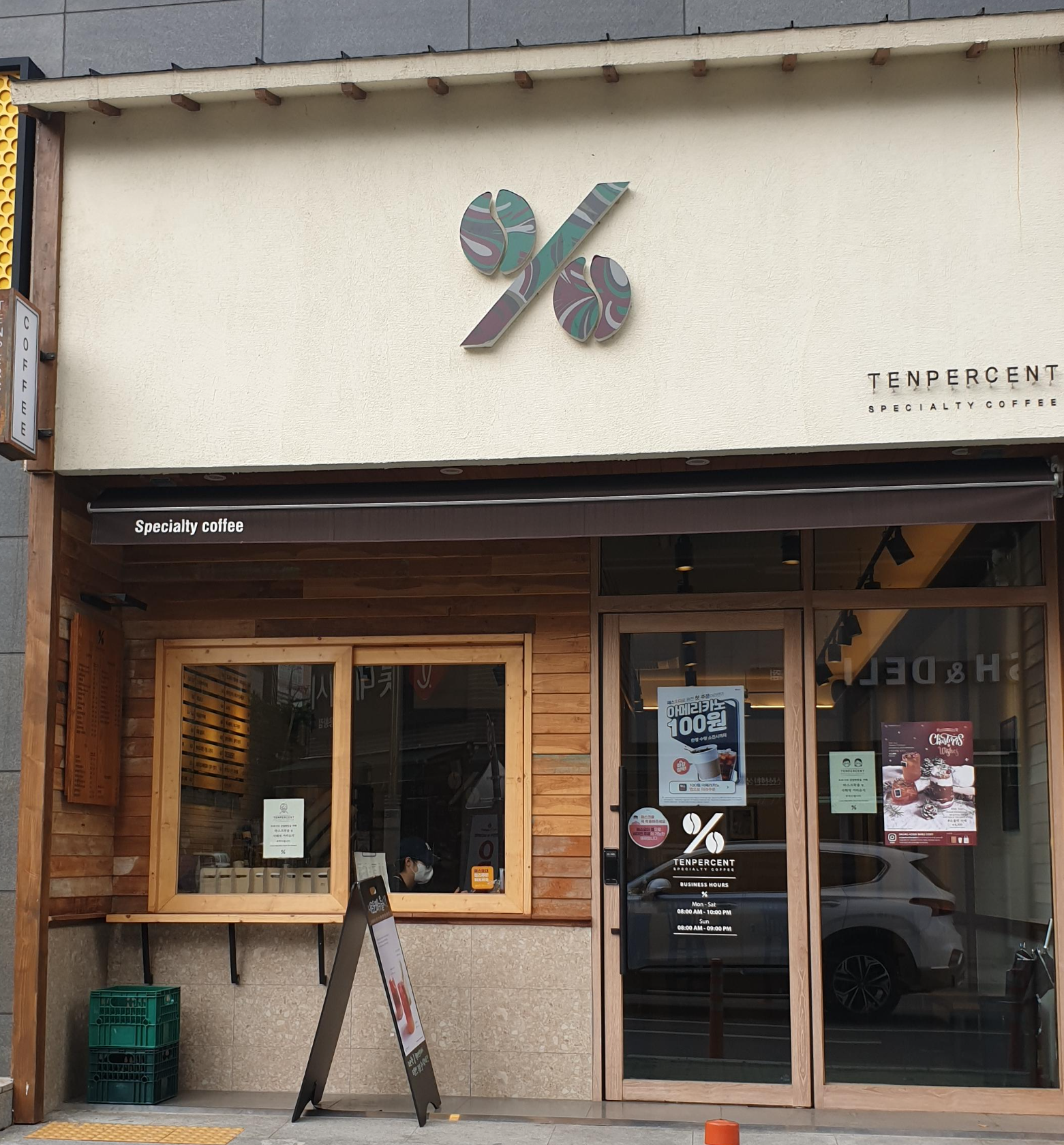 텐 퍼센트 운영 시간은 월-토 까지는 8시부터 22시까지